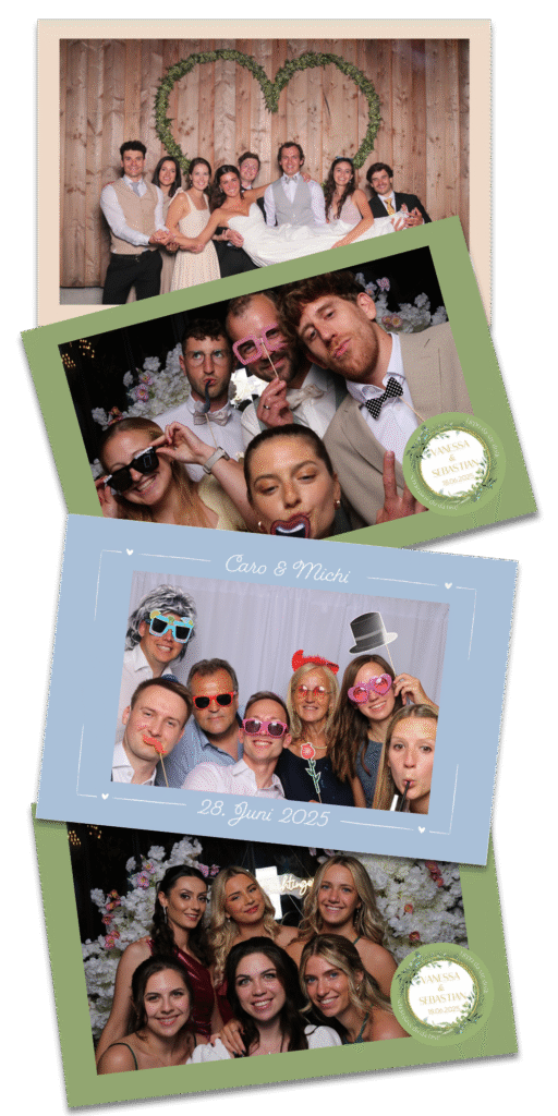 „Die Fotobox war der Hammer! Die Qualität der Drucke war sehr gut und auch, dass man das Design individuell entwerfen lassen kann, hat uns begeistert und überzeugt!“